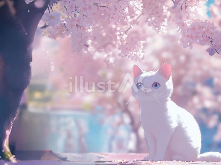 这个"櫻花和白貓"插图是DREAM创作者的作品。我们每天都会更新更多免费插图和图像。